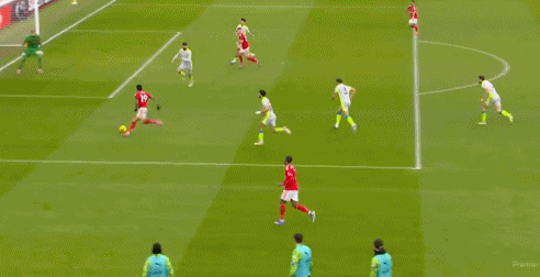 然而,短短6分鐘之后,賴因德斯中場丟球讓諾丁漢森林扳平比分。熱蘇斯禁區(qū)左肋橫傳,哈欽森掃射破門,1比1!